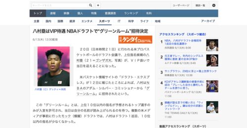 八村塁はVIP待遇 NBAドラフトで“グリーンルーム”招待決定 https://headlines.yahoo.co.jp/hl?a=20190613-00000027-nkgendai-spo 〈記事によると〉20日(日本時間21日)に行われる米プロバスケットボールのドラフト会議で、上位指名候補の八村塁(21=…